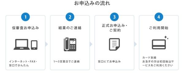 審査にかかる期間としては、仮審査の連絡と郵送にかかる日数を考慮して、利用開始までに1週間前後を想定しておきましょう。