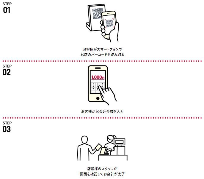 支払いもバーコードを設置してお客様に読み取ってもらうだけです。機器の導入は不要です。