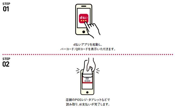 d払いの支払い方法は「バーコード店頭設置」または「バーコード読み取り」の2つです。