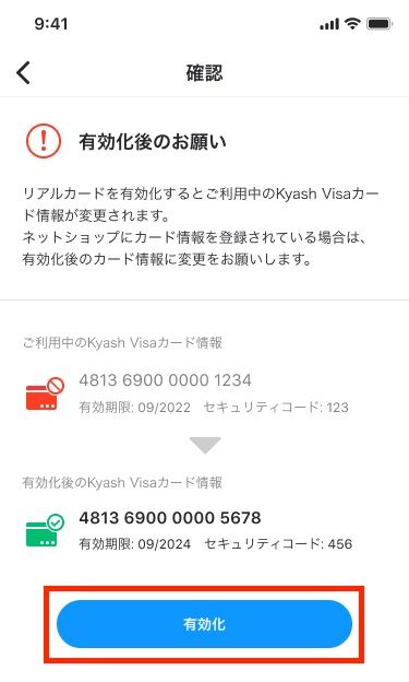 有効化後は、これまで利用していたバーチャルカードの情報は、リアルカードの情報に上書きされることになります。