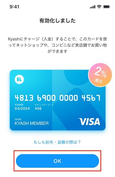 Kyash(キャッシュ)リアルカードの有効化の手順