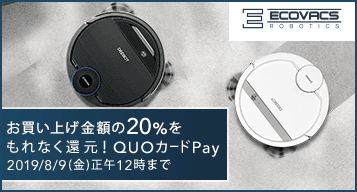 エコバックスジャパンのロボット掃除機DEEBOTなどの対象商品の購入で、QUOカードPayにてお買い上げ金額の20%が還元されます。(2019年7月現在)