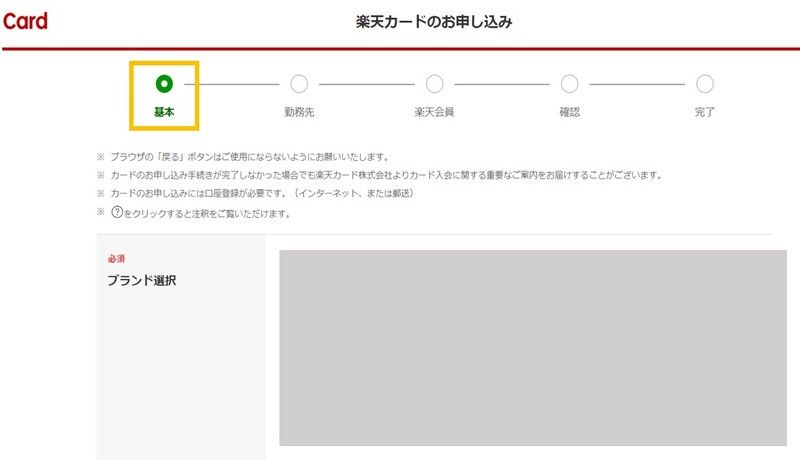 【画像付】楽天カード申し込みフォーム入力の流れ