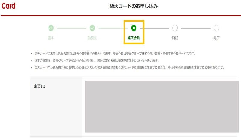 カード申し込みの時点で楽天の会員登録ではない方は、このタイミングで会員登録をおこないます。