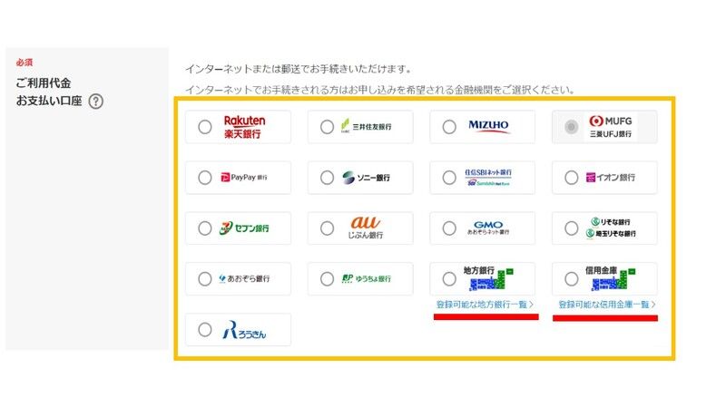 また、支払い口座を選ぶ際も指定された銀行や信用金庫から選定することになります。