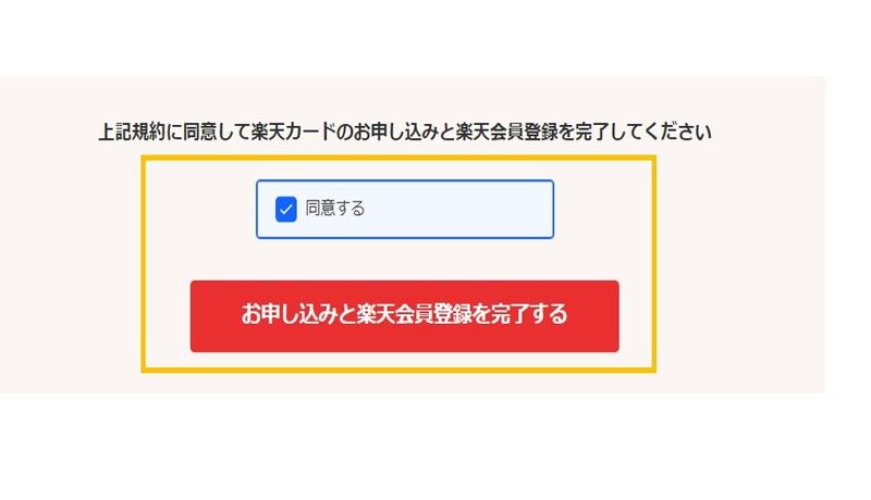 それぞれの規約に同意した後、ページの最下部にある「同意する」にチェックをし、「お申込みと楽天会員登録を完了する」のボタンを押すと完了です。