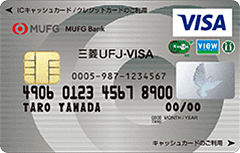 ・三菱UFJ銀行のキャッシュカード機能付き ・ATM利用手数料の優待あり ・貯まった三菱UFJポイントはキャッシュバックが可能(200ポイント→1,000円) ・最高500万円補償の海外旅行保険が利用付帯 |