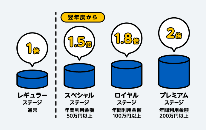 ・年間利用金額50万円以上で、次年度のポイント倍率が1.5倍(スペシャルステージ)